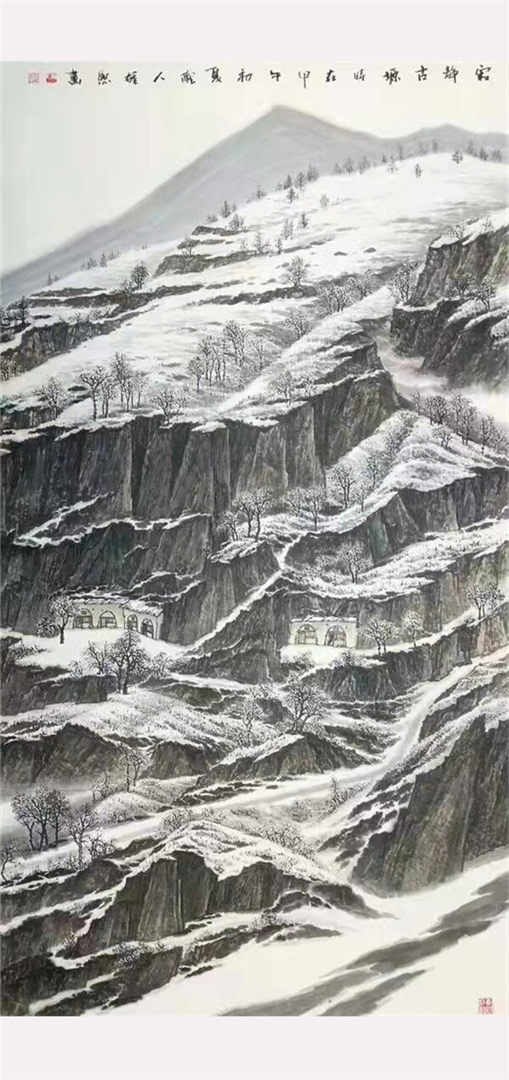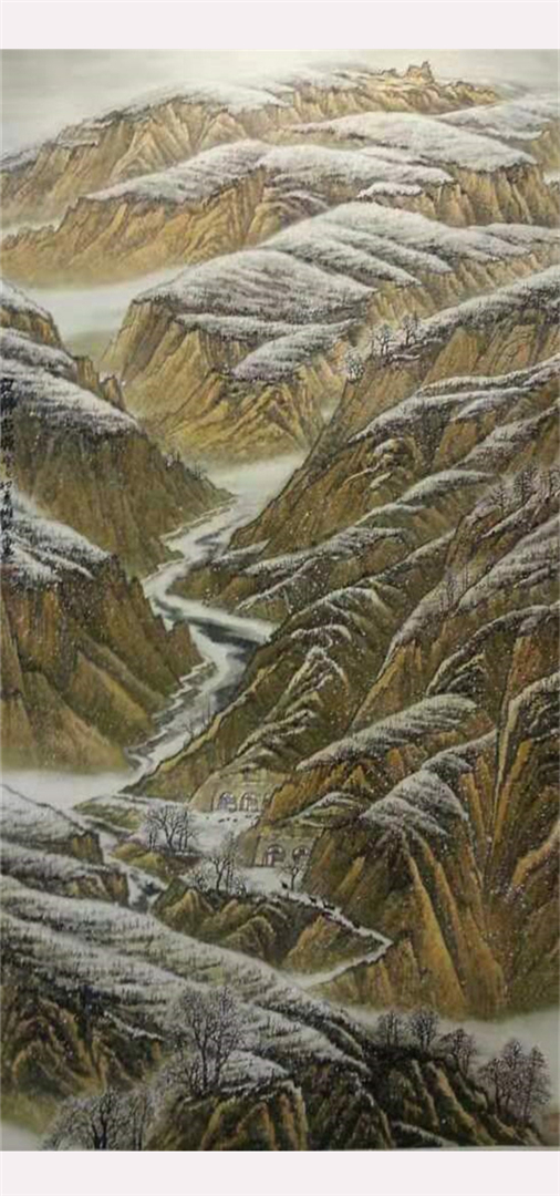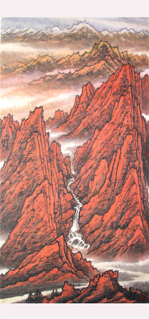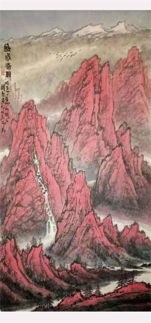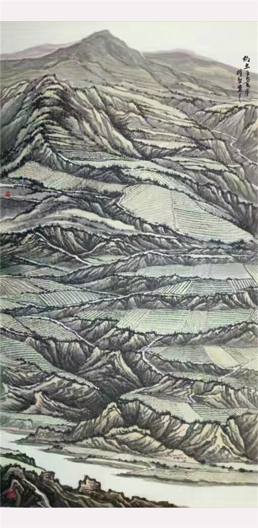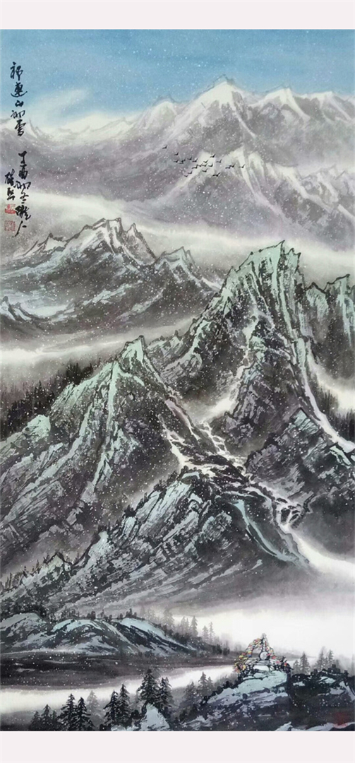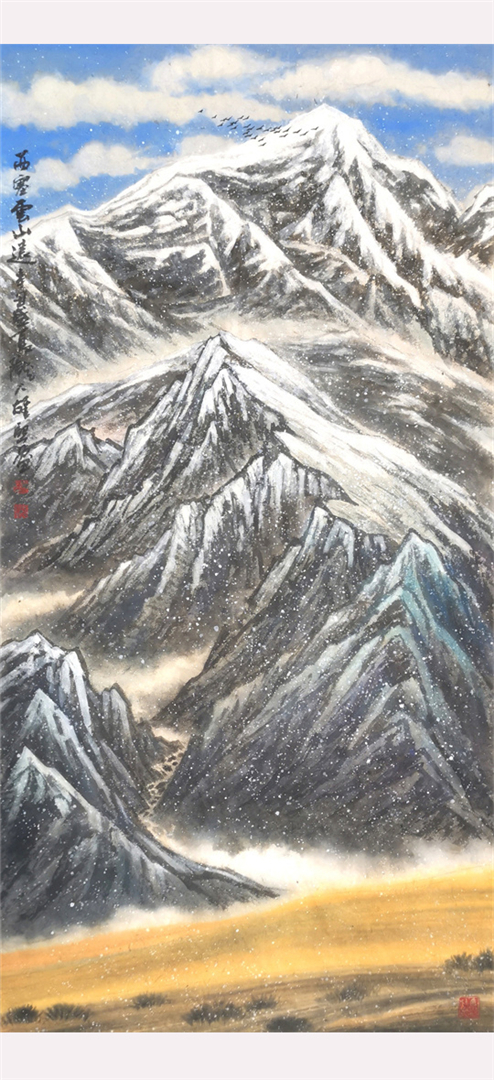 其创作作品具有独特的西部高原山水绘画风格,壮美粗犷、气势雄浑。